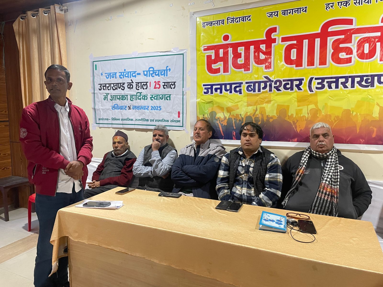 बागेश्वर में संघर्ष वाहिनी के बैनर तले उत्तराखंड के 25 साल के दौर की समीक्षा की गई। विभिन्न संगठनों तथा पत्रकारों ने उक्त संवाद में भागीदारी की। कार्यक्रम का संचालन गिरीश तिवारी ने किया। सामाजिक कार्यकर्ता भुवन कांडपाल ने बीते पच्चीस सालों दर्द बयां करते हुए कहा कि विचारों को सुनने वाला कोई नहीं है, अफसरशाही चरम पर हैं और पलायन का दंश उत्तराखंड झेल रहा है। नेताओं का खूब विकास हुआ है और आम आदमी बेहाल हुआ है।